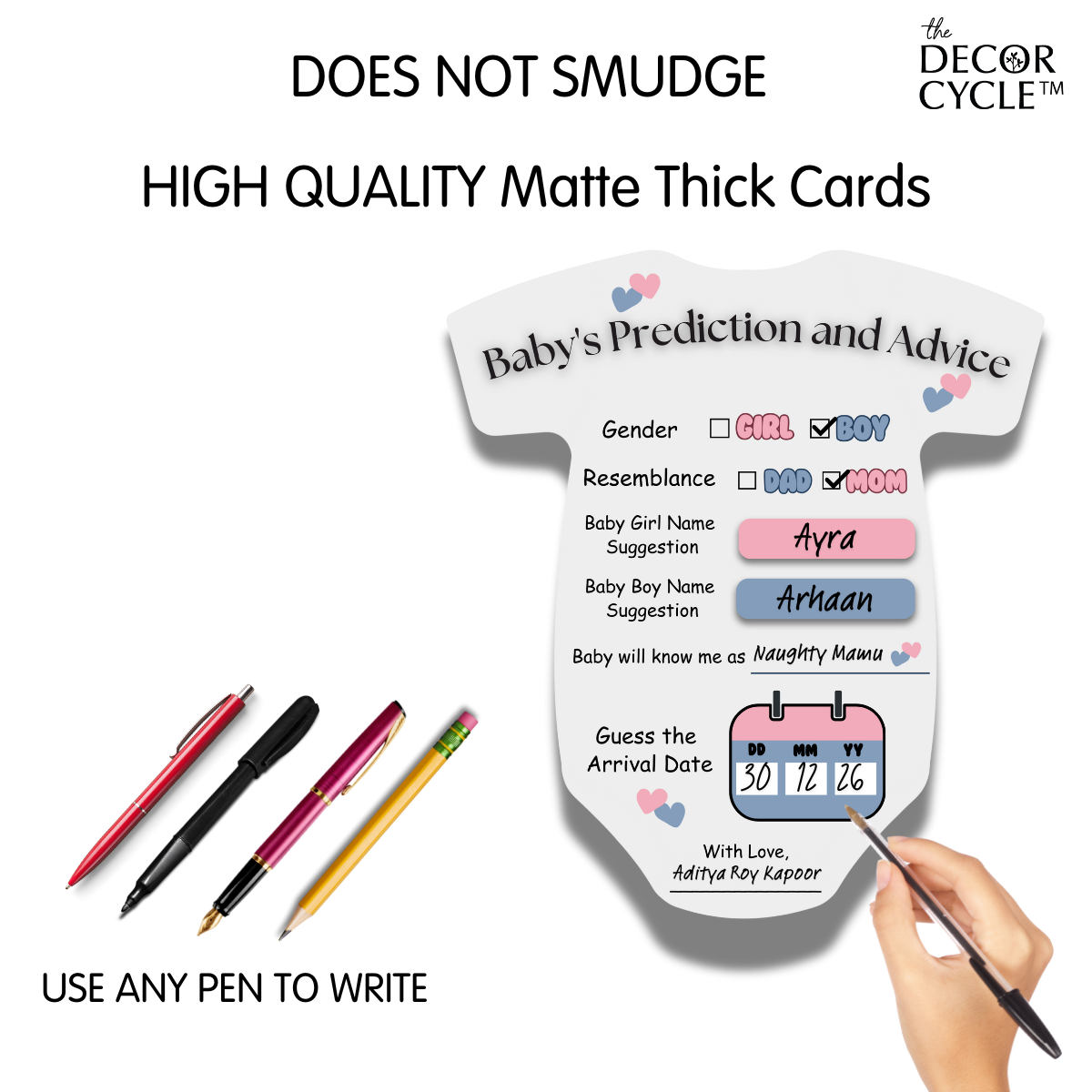 The Decor Cycle, Pack of 20, Baby Shower Decoration Items Gift Cards for Games Wishes Name Suggestion cards, Shape Cut, 5 X 4.5 Inches