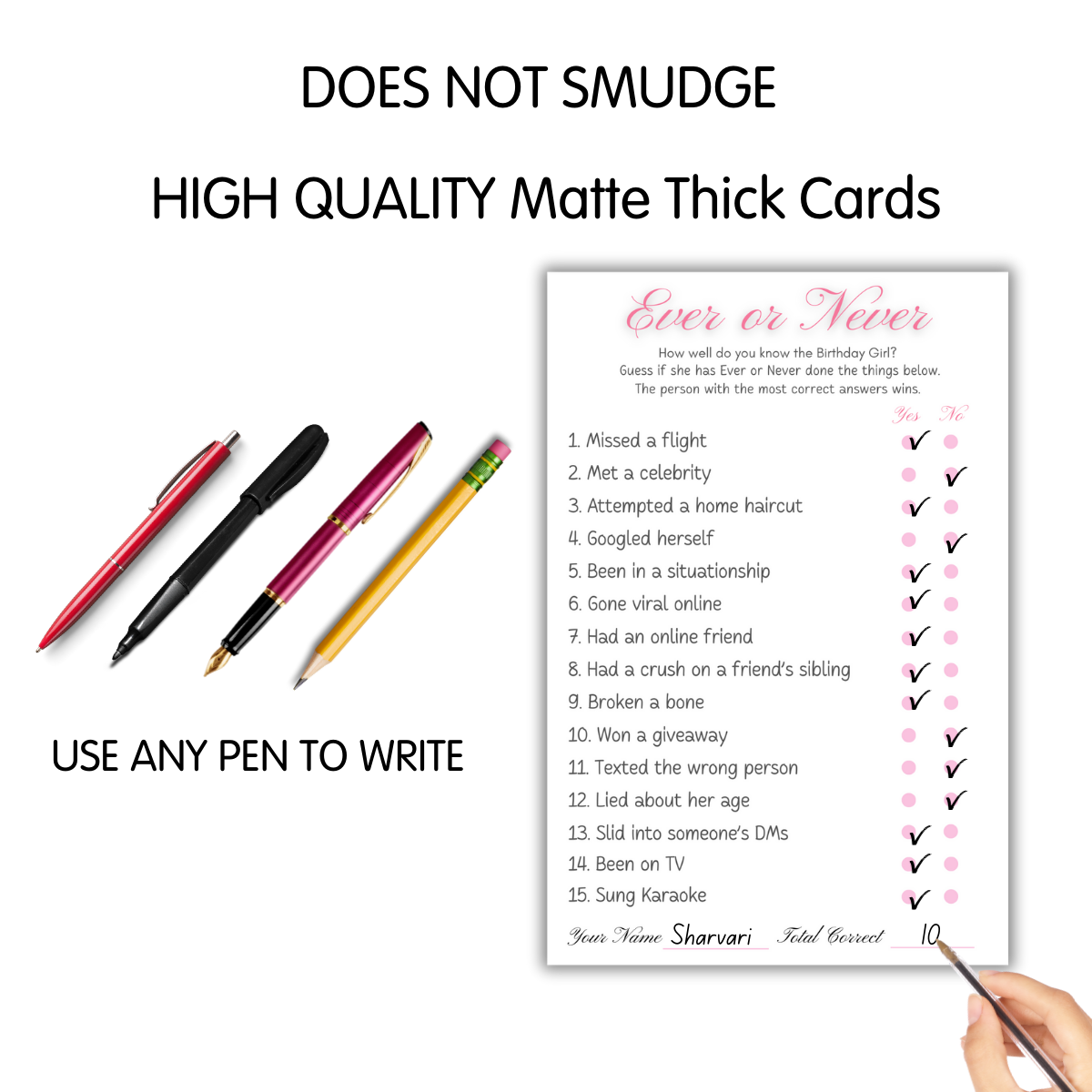Add laughter and friendly competition to the birthday celebration with Ever or Never, a fun party game all about how well guests know the birthday girl. From funny confessions to surprising moments, these cards are guaranteed to spark reactions, stories, and lots of laughs.