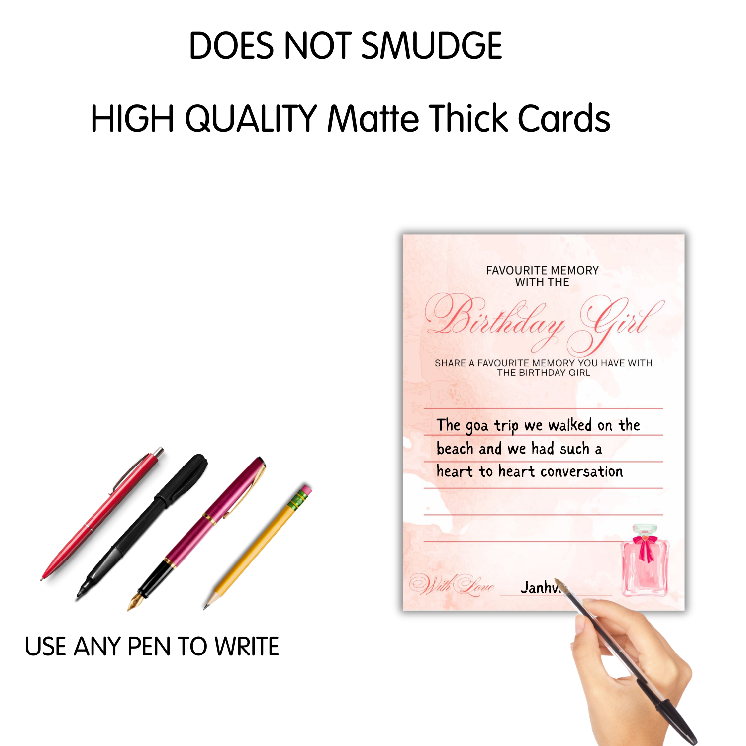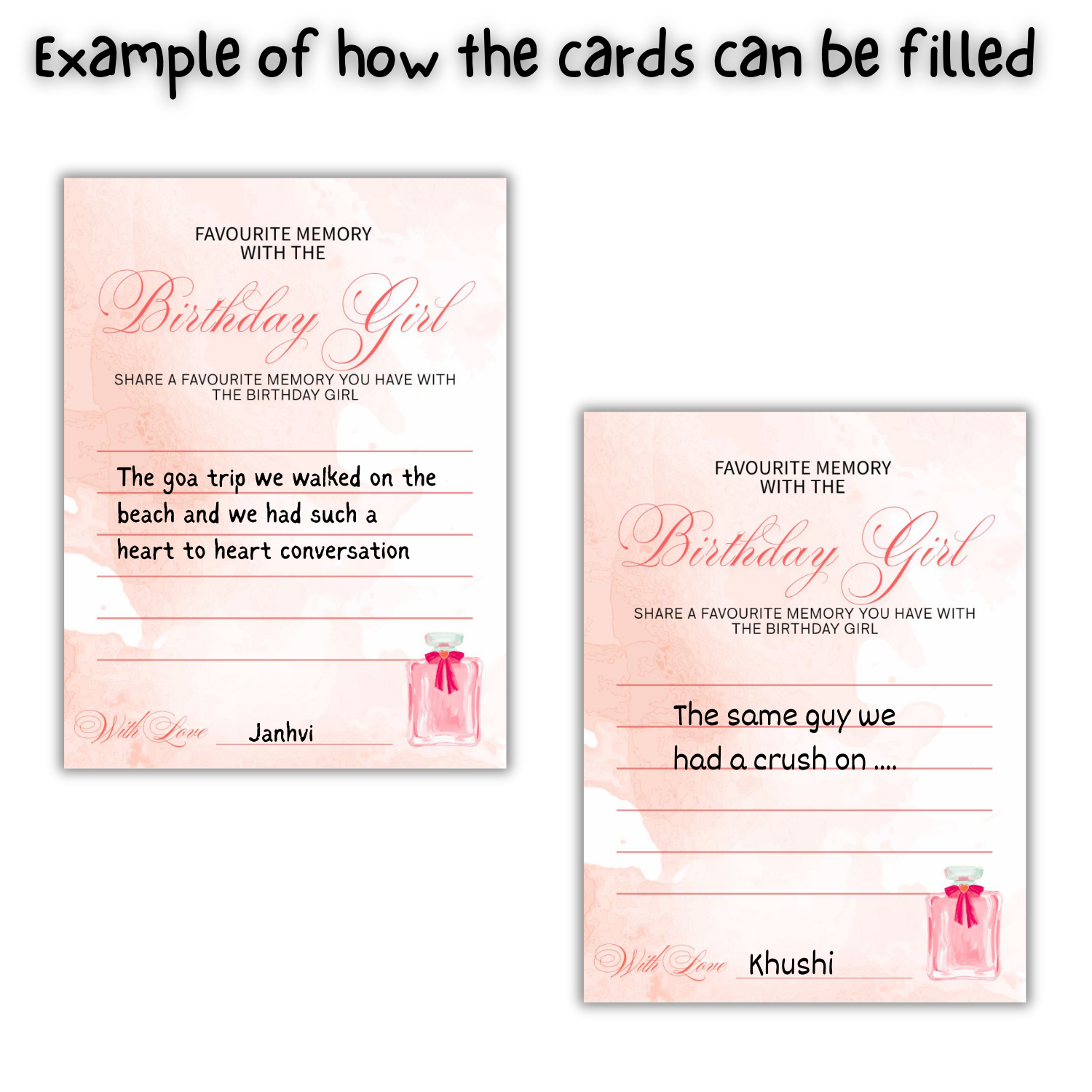 Make the birthday celebration extra special with these elegant Favourite Memory with the Birthday Girl cards. Designed in soft blush tones with delicate accents, these cards invite guests to share their sweetest, funniest, and most heart-warming moments with the birthday girl.