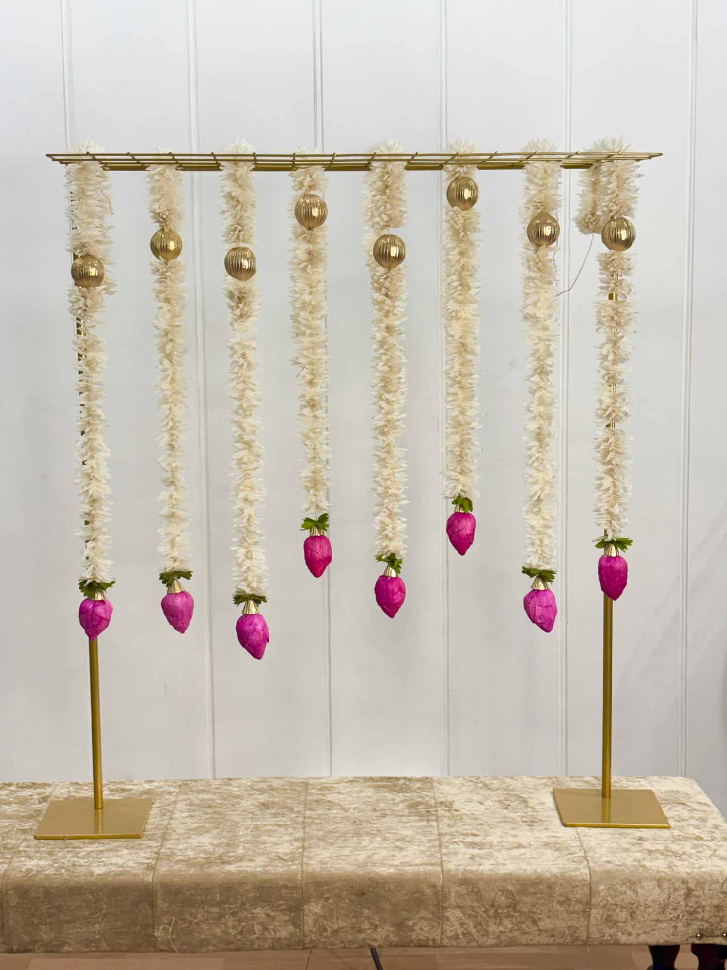 Add a touch of rustic elegance and festive charm to your space with our Lotus Tassel Pooja Decor Set. Perfect for intimate celebrations, home corners, or event backdrops, pooja, Ganpati celebrations and Navratri celebration this set combines simplicity with tradition for a look that’s effortlessly beautiful.