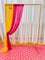 Sheer Yellow and Pink Drape curtain. The length of the curtains are 10 ft and the height is 7.10 ft, it can be used as a decor backdrop. It comes with a 3 inches loop on top so that it can easily slide in on any stand.