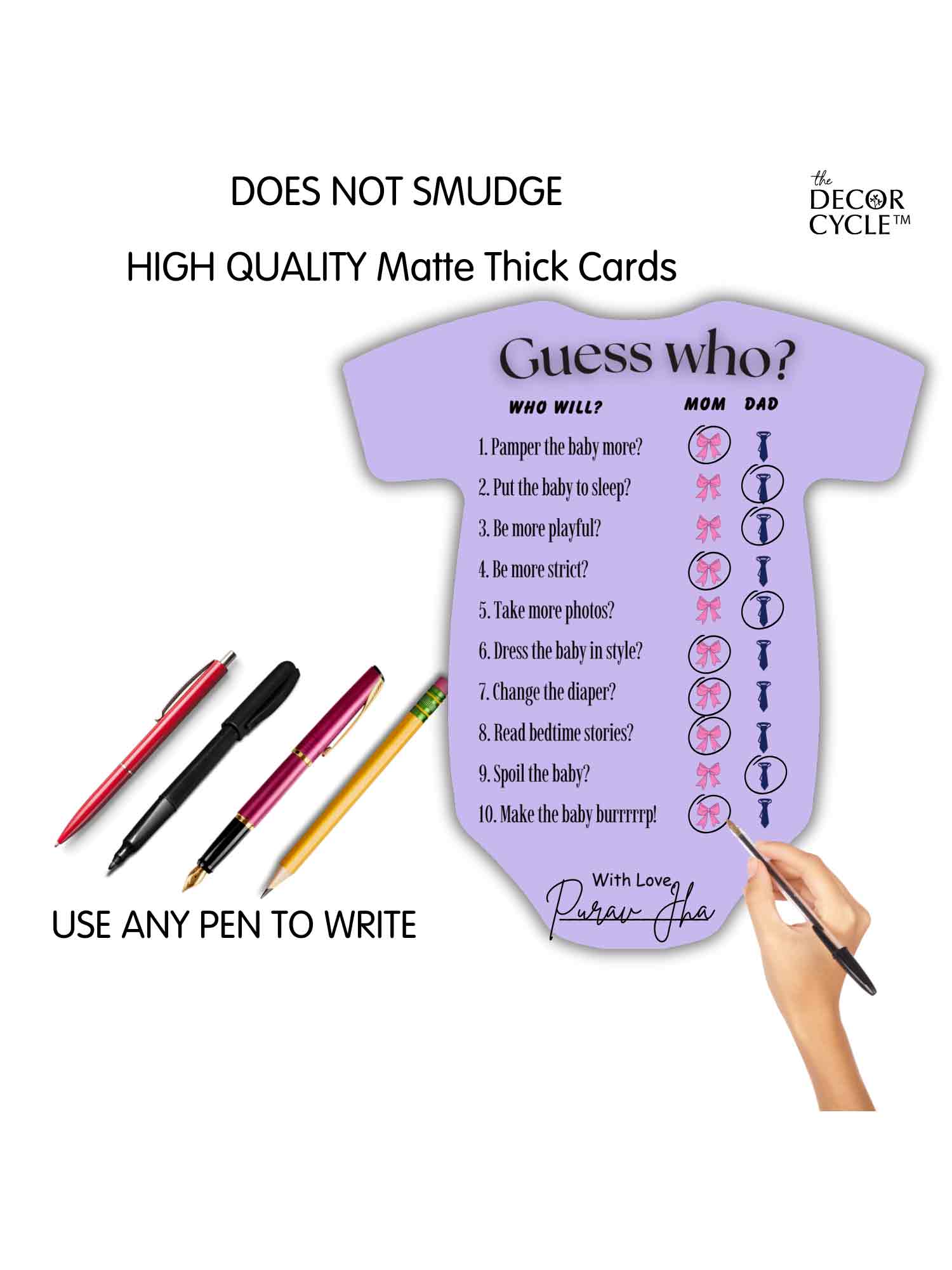 The Decor Cycle, Pack of 20, Baby Shower Decoration Items Gift Cards for Games Guess Who cards, Shape Cut, 5 X 4.5 Inches