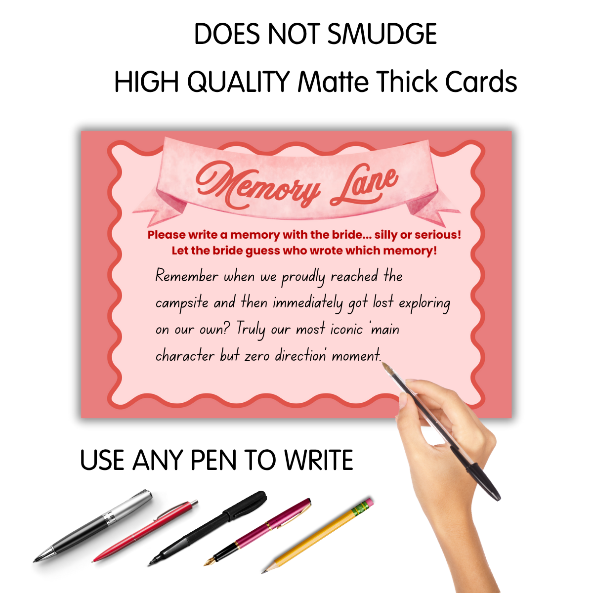 Take a trip down memory lane with the bride-to-be! Memory Lane is a heartwarming bridal shower game that lets friends and family share their favorite moments, funny stories, or touching memories with the bride.