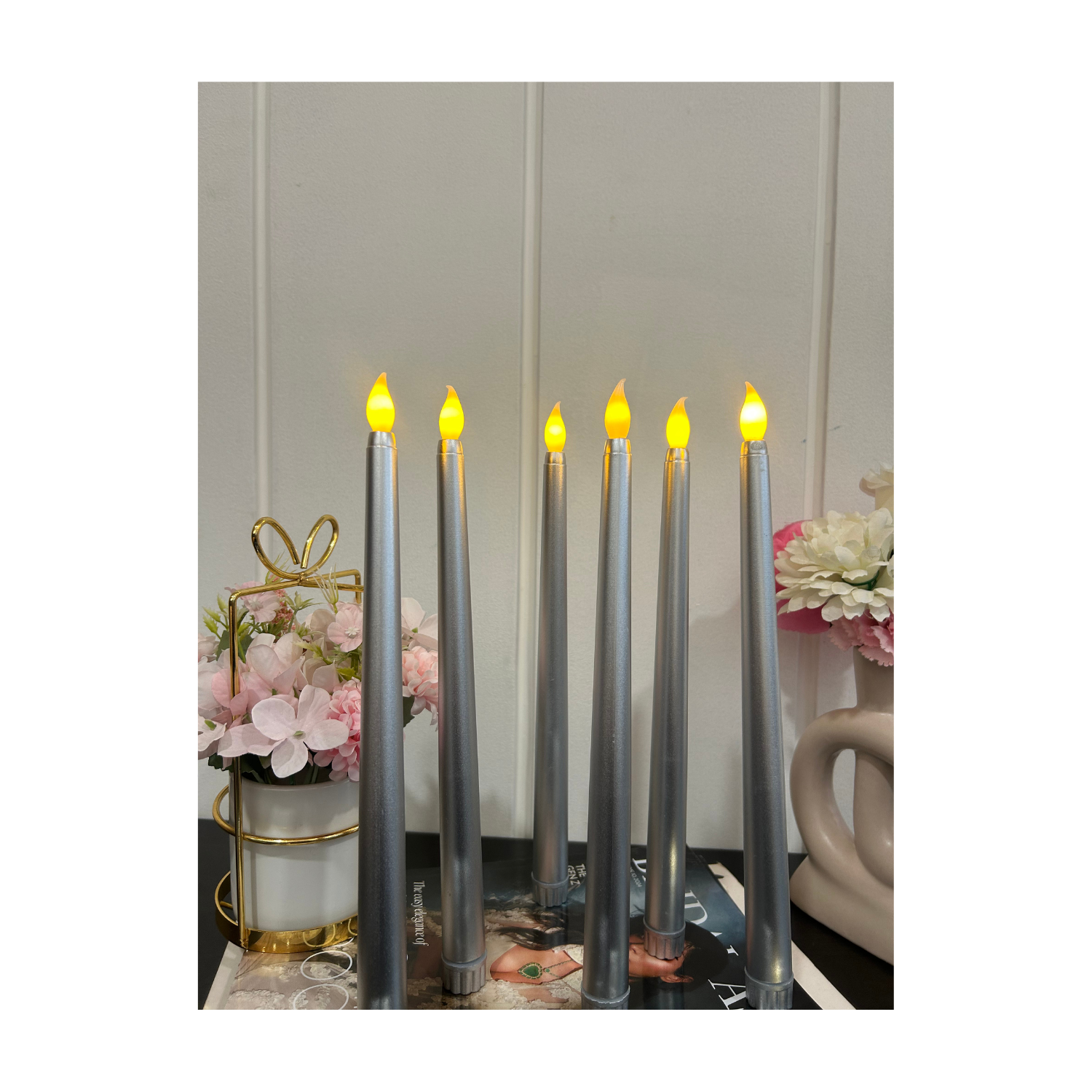 Add a luxurious touch to your décor with these LED Silver Candles, designed to bring an elegant glow to any occasion. The flickering LED flame, these candles create a sophisticated ambience minus the fire hazard or dripping wax.